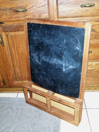 Ikea wall hanging chalk board. Wood framed as pictured. Model Luns 21883. Good for teaching, writing messages, etc. Fair used condition. Measures aprox `9" wide x 3 1/2" deep x 28" height. Pick up from Villa Park, IL. Please call or text show contact info
