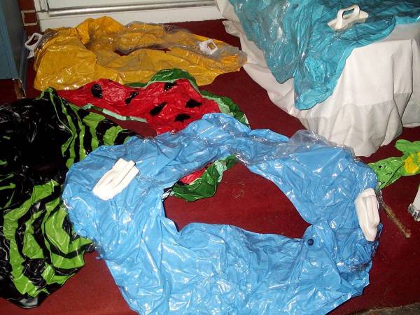 PRICE GETS ALL 6 WATER TOYS. Six swimming pool or lake river blow up colorful float toys to be sold as a lot. WILL NOT SEPARATE. Some floats are round inner tubes, rectangle with handles river floats and a blow up pool green playful animal monster toy. One looks like a watermelon. Some are Intex brand. The rectangle floats with handles are 43" x 30". Exactly as pictured. Great condition. Pick up from Villa Park. Please call or text show contact info