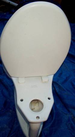 Excellent Kohler toilet. Includes a nice seat as pictured. 1.6 gallons or 6 liters or less per flush making this a water saving efficient toliet. No tank. Measures aprox 15" length x 28" deep x 16" height. Pick up from Villa Park. Please call or text show contact info