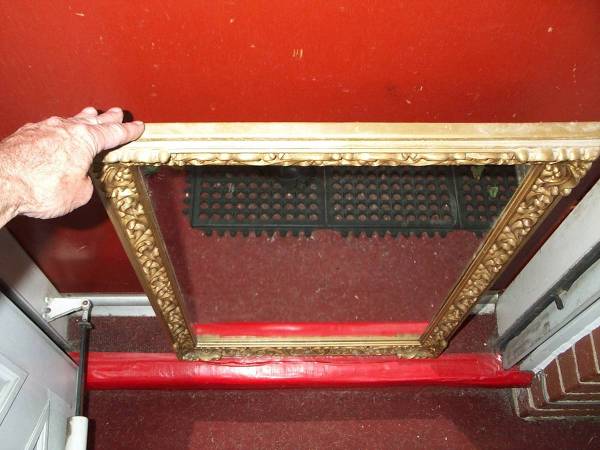 Gothic style gold frame wall hanging mirror. Nice condition. Measures aprox 27" length x 1" thick x 19 2/16" height. Pick up from Villa Park. Please call or text show contact info