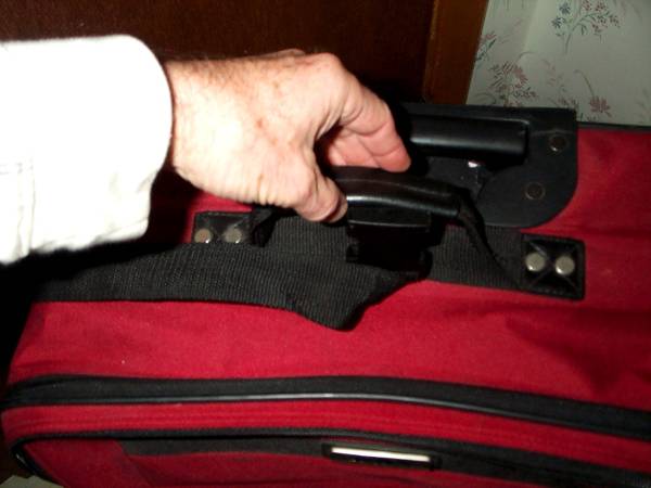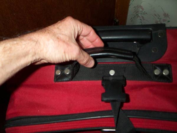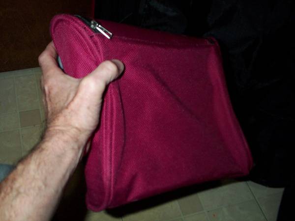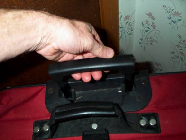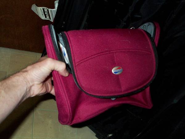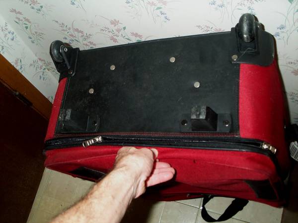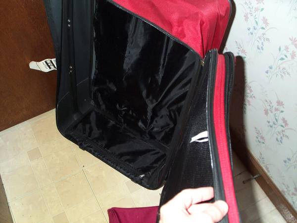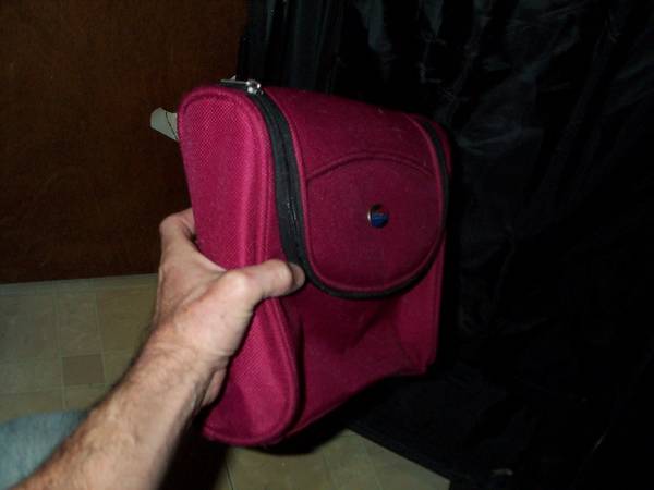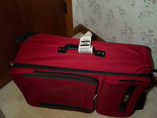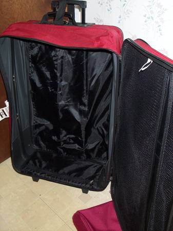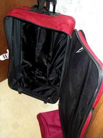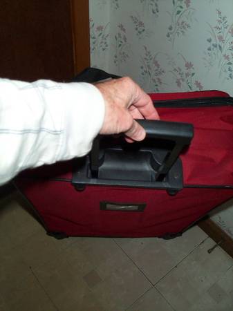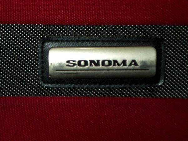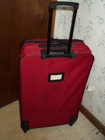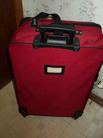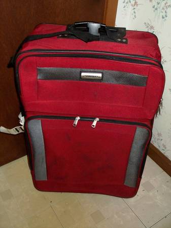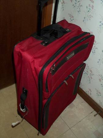 Sonoma large burgundy color suitcase. BONUS American Tourister bag (pictured) that can be placed in the suitcase for cosmetics, toothbrush shampoo etc. Multi storage areas. Pull up retractable handle. Carry handles are in good condition. Wheels for ease of rolling the suitcase. Measures aprox 18 1/2" length x 8" depth x 29" height. The bonus bag measures aprox 10 1/2" length x 5" deep x 9 1/2" height. Pick up from Villa Park, IL. a few blocks north of Roosevelt Road. Please call or text show contact info