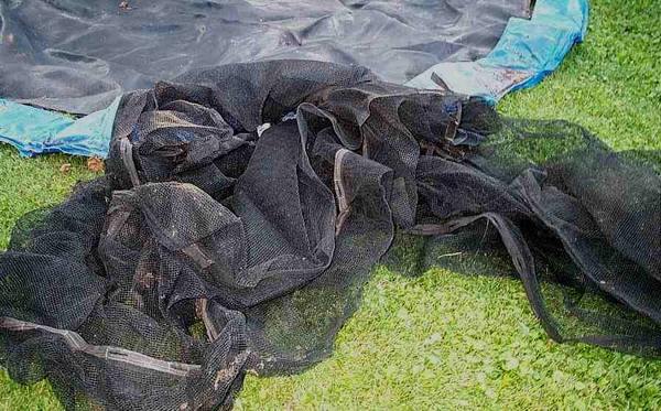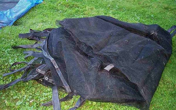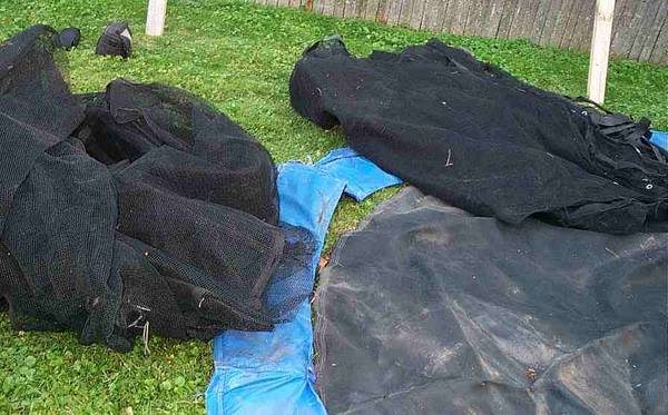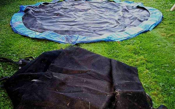 140" round black trampoline replacement mat. Blue cushioned surround. Also included in the price are two bonus safety nets pictured. Very small hole in black mat. Folds for easy transport. Pick up from Villa Park, Illinois. Please call or text show contact info