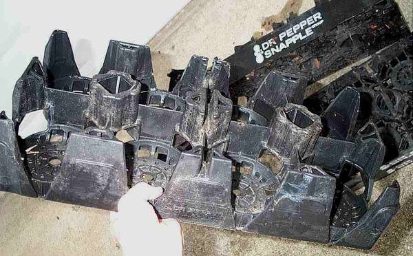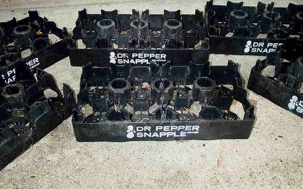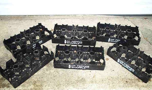 6 rare vintage collectible store plastic pop bottle stacker oganizers promoting Snapple and Dr. Pepper. Opening for multiple bottles is 4 1/4" round. These need some cleaning up though are in otherwise good condition. Each measures aprox 19" length x 9 1/2" deep x 4" height. Pick up from Villa Park. Please call or text show contact info