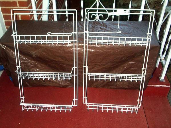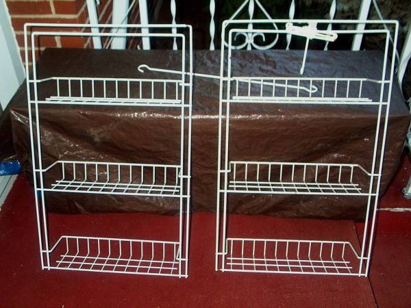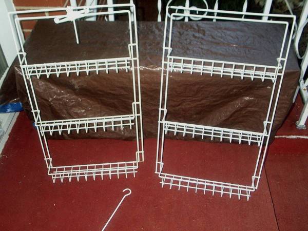 PRICE GETS TWO SHELVES. WILL NOT SEPARATE. Two matching compact size wall mount metal multi level shelves. Anything from spices, shampoo, closet organizer to store displays. Each shelf measures aprox 19" wide x 5" deep x 31" height. Easy pick up a few blocks north of Roosevelt Road. Please CALL or TEXT show contact info