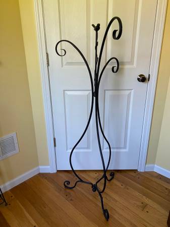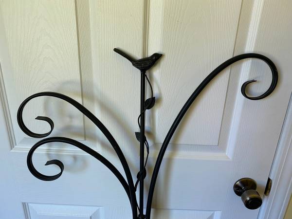 Display your hanging flower baskets with this 3-Arm Hanging Basket Planter Stand Height - 48" Iron construction with a black finish For use with up to 3 hanging flower baskets 3-point foot design...