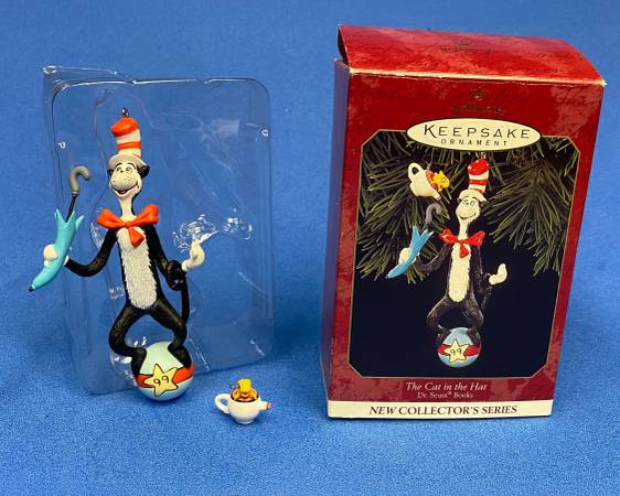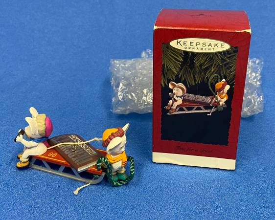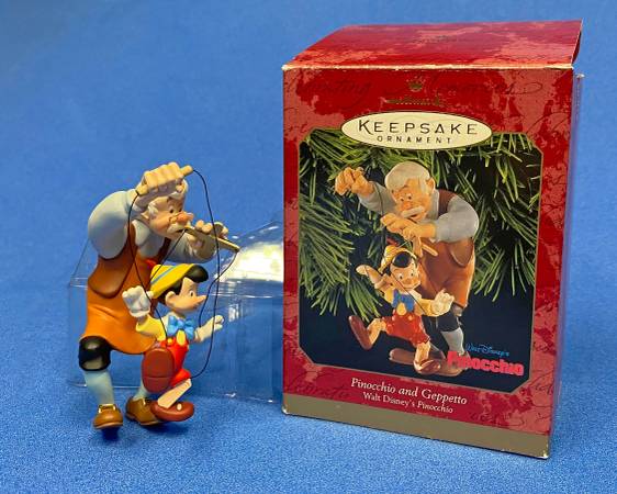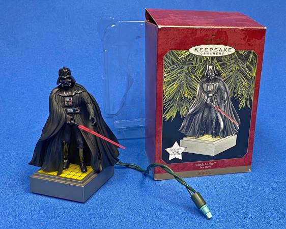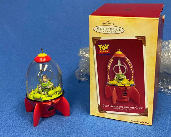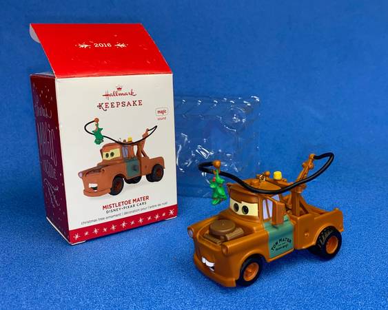 $10 - 1992 Enesco General Mills 'Cartin' Home Holiday Treats' (no box) $5 - 1996 Hallmark - Hershey's Chocolate 'Time for a Feast' Mice on Sled $15 - 1997 Hallmark - Star Wars Darth Vader (Magic Light & Voice- not for use with LED strings) $10 - 1998 Hallmark - Lighthouse Greeting (with blinking light- not for use with LED strings) $15 - 1998 Hallmark - Star Wars 'Princess Leia' white dress $10 - 1999 Hallmark - Disney's Pinocchio & Geppetto Marionette $10 - 1999 Hallmark - Dr. Seuss 'The Cat in the Hat' includes separate 'Fish in Teacup' $15 - 1999 Hallmark - Lady and the Tramp 'The Family Portrait' $10 - 1999 Hallmark - Spotlight on Snoopy 'the Famous Flying Ace' $10 - 1999 Hallmark - Winnie The Pooh Collection 'Tigger Plays Soccer' $5 - 1999 Seasonal Specialties - Disney Pixar Toy Story 2 'Buzz Lightyear' flying pose $10 - 2000 Hallmark - Peter Pan 'Off to Neverland' $10 - 2001 Hallmark - I Love Lucy 'Vitameatavegamin TV Commercial' $15 - 2001 Hallmark - Star Wars 'Naboo Royal Starship' $10 - 2002 Hallmark Disney Pixar 'Toy Story' Woody & Bullseye Marionette (no box) $10 - 2003 Carlton Cards - I Love Lucy 'Ricky's Hawaiian Vacation' $20 - 2004 Hallmark - Disney Pixar Toy Story 'Buzz Lightyear and the Claw' $10 - 2009 Hallmark - All American Trucks '2004 Chevrolet SSR (yellow Super Sport Pickup) $10 - 2009 Hallmark - Humpty Dumpty on a wall $5 - 2015 Hallmark 'Snow Buddies' Snowman & Beaver on glittery Snow (2.5" tall) $15 - 2016 Hallmark - Pixar Cars 'Mistletoe Mater' (plays sound, the battery needs replacing) $10 - 2019 Hallmark - Star Wars The Mandalorian Grogu The Child Baby Yoda (Blown Glass)