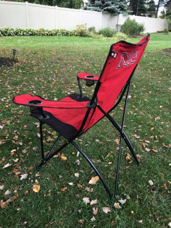 Show off your gameday spirit in style with this Black/Red Folding Camping Chair.