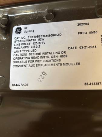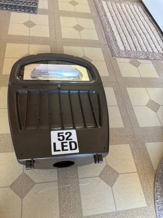 52 Watt LED Street Lamp Head. 175 Watt equivalent compared to conventional bulbs. Also, theoretically LED bulbs can last forever! Obviously outside factors will influence that but you can still expect several years of service, at about one third of the power usage. Because of the design and reflectors within this fixture you can expect nearly day light results. This was never installed, I believe it was used as a salesman’s sample. This would make an awesome driveway light, especially if you have a basketball hoop!, 120/277 volt. Needs mounting bracket and electrical connector Make me an offer.