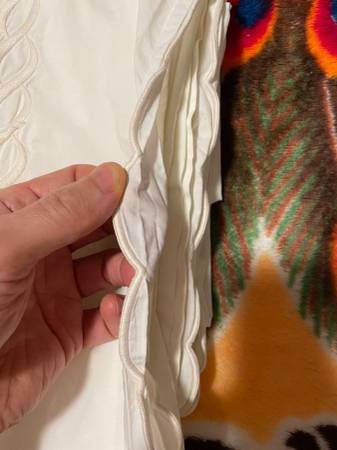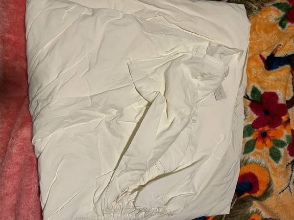 Part of the savings buying from me is reflected not only from the sheets and pillowcases having a prior owner (even though the pillowcases were never used), but because there is one tear in each sheet. The tear in the flat sheet should be easy to sew since it is a straight tear, but no one over here knows how to use a needle and thread. The tear in the fitted sheet might be harder (but I am just guessing) since the tear goes at an angle and is not perfectly straight.