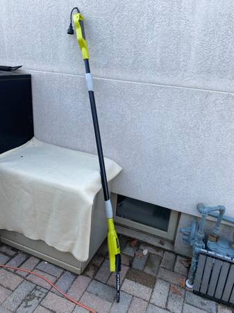 RYOBI 8 in. 6 Amp Pole Saw 8 in. Polesaw Features Adjustable Length Up to 9 ft. Features Angled Cutting Head for Better Cut Control In good working order