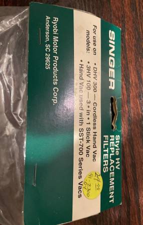 Singer Hand Vac 3-N-1 Model 3HV100 Vacuum Cleaner Filters! Also works for: