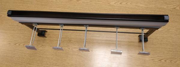 Selling a NEW, never used metal rack which can display a single row of 5 metal peg hooks. These 5 Peg hooks are included.