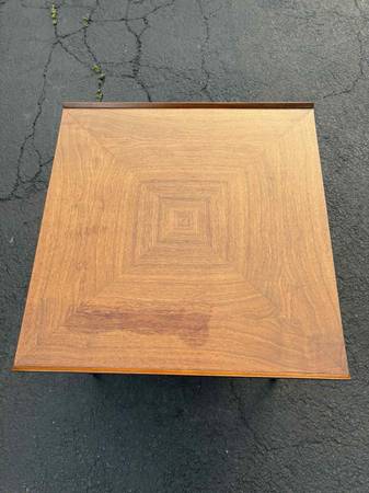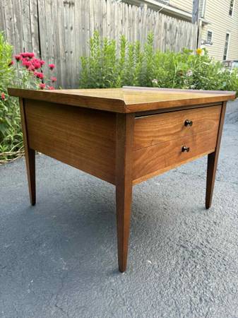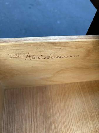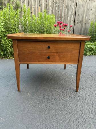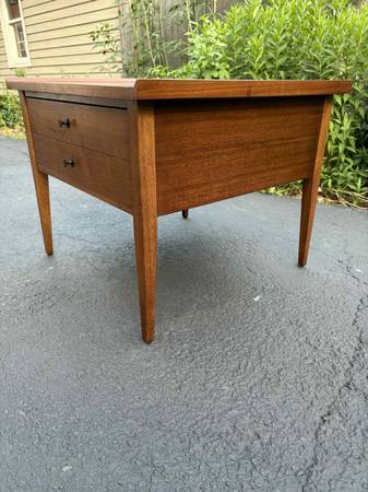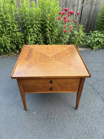 American of Martinsville Side table with drawer black knobs. This Table is solid, Delivery is available to all Chicago area and surroundings. Depth 25” Width 25 1/2” Height 20 1/2”