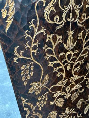 Available Black and Gold Four Panel Room Divider. This piece is in excellent condition please see all pictures and ask any questions you may have about this piece. Delivery is available to all...
