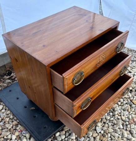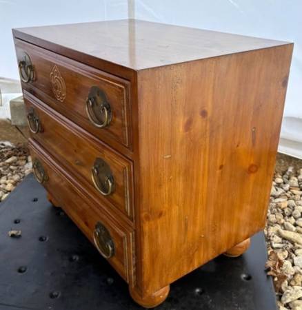 Available Henredon Asian Inspired Knotty Pine 3 Drawer Night Chest. This piece is in excellent condition. Please see all pictures and ask any questions you may have about this piece. Delivery is available to all Chicago land and suburbs. Please message at number provided for any questions.
