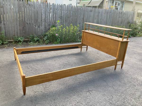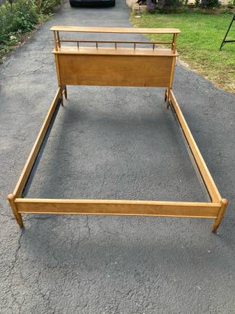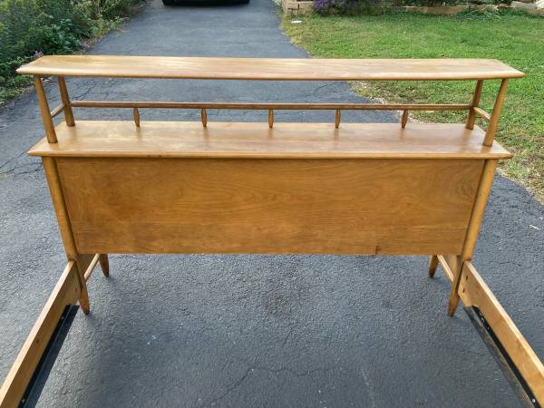 Mid Century moder Console/Entrywaytable/Full size bed Cusman 410. This piece shows some blemishes from age and from being pre-own. The headboard is just wide enough to be used as a console. Please see all pictures and ask any questions you may have about this piece. Delivery is available to all Chicago land and suburbs.