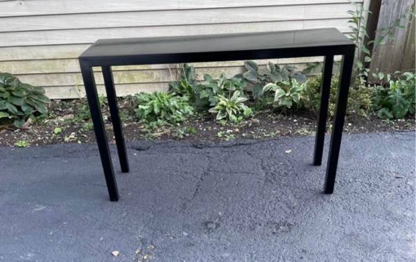 Available Mid Century Modern Black Laquer Console Table Lane Furniture. This piece shows some blemishes from age and from being pre-own. Please see all pictures and ask any questions you may have about this piece. Delivery is available to all Chicago land and suburbs. please message at number provided for any questions.