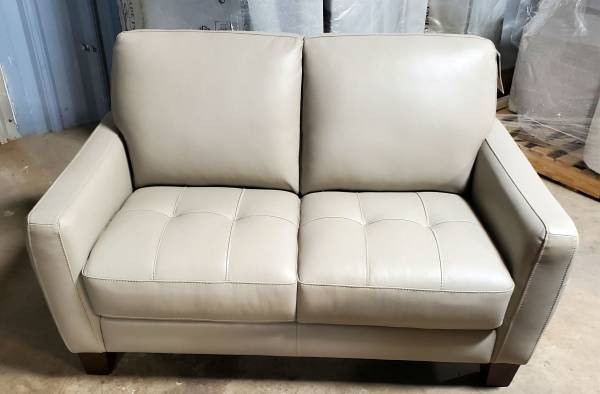 Upgrade your space with this modern cream leather loveseat — perfect blend of comfort, durability, and style. The smooth leather finish gives it a high-end designer look, while the tufted seat cushions add that extra touch of detail. Ideal for apartments, offices, or cozy living rooms.