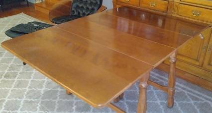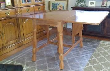 Sides fold down to save space. Opens to a large 40" x 768" area with 2 extra leafs.