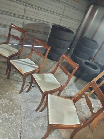 Price reduced must sell moving.wood and finish in good cond. Chairs need new fabric.