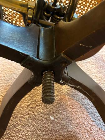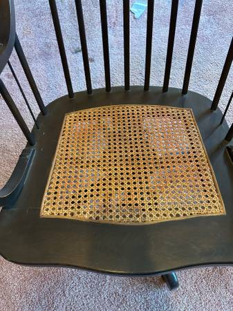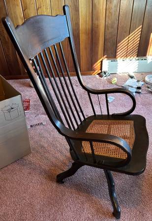 Antique swivel armchair – wooden with woven seat. This chair is in good condition. It was originally purchased from an antique store years ago and the card is still attached to the base of the...