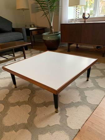 Beautiful mid century modern decorative table. It is in excellent condition. There is a small little ring mark as shown in the pictures. The table measures 30.5 inches wide by 30.5 inches deep by 11.5 inches tall. This is a vintage one of a kind table. It is solid and heavier than it looks. I originally purchased this for $300. I am asking $175 cash and pick up only please.