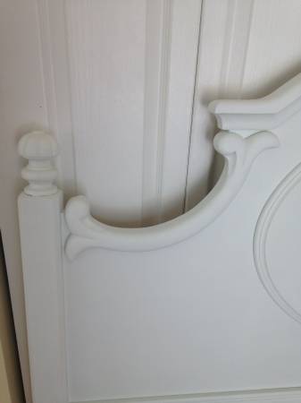 The high quality vintage Lexington Solid Wood Queen or Double headboard was chalk painted twice & then, given a layer of clear protective wax. It weighs about 175-200lbs & is an impressive piece of furniture.