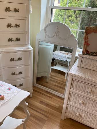 The beautiful Lexington all wood beveled mirror was chalk painted twice & then, given a coat of clear protective wax. Excellent condition! Ready to hang!