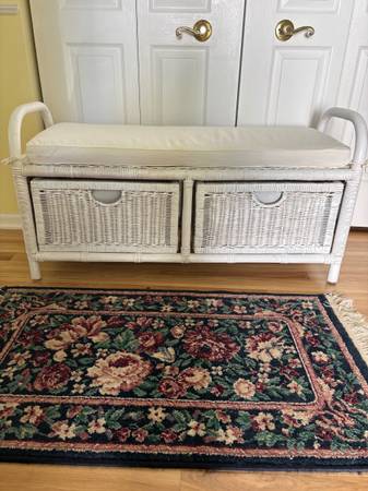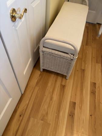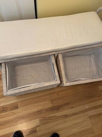 Hi, thanks for your interest! Reduced from $95! Excellent condition! The cushioned bench can be used for bedroom or foyer to put shoes on & use for storage. Great for dorms & craft rooms...