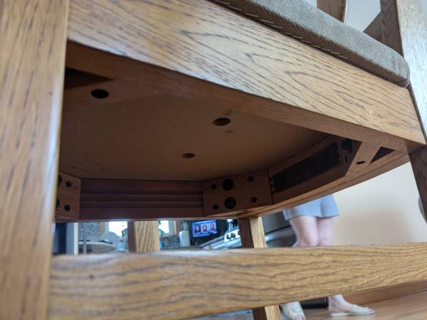 Custom wood kitchen / dining table. Patterned table top. 4 chairs. -...