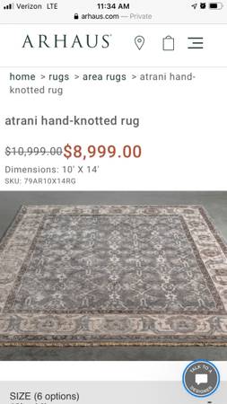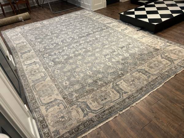 Barely used silk our house rug, also professionally cleaned. One edge was ripped in the move; hide that edge under the couch or the bed! 10 x 14