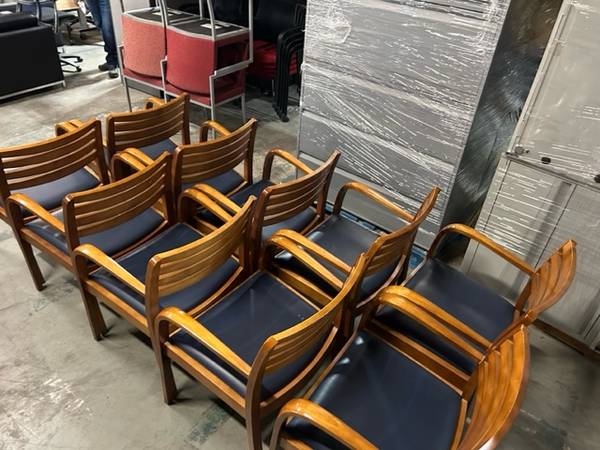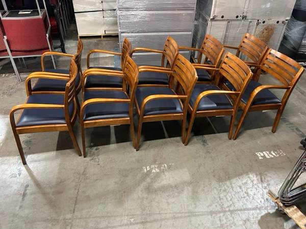 Gunlocke wooden guest chair for sale. Perfect for any reception area, breakroom, or even the office. Pickup is available with delivery also available for a fee. $125 Each Quantity: 10