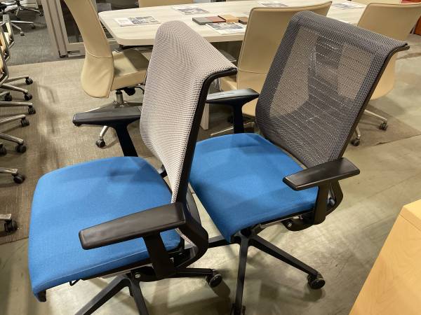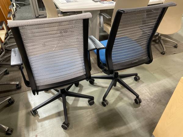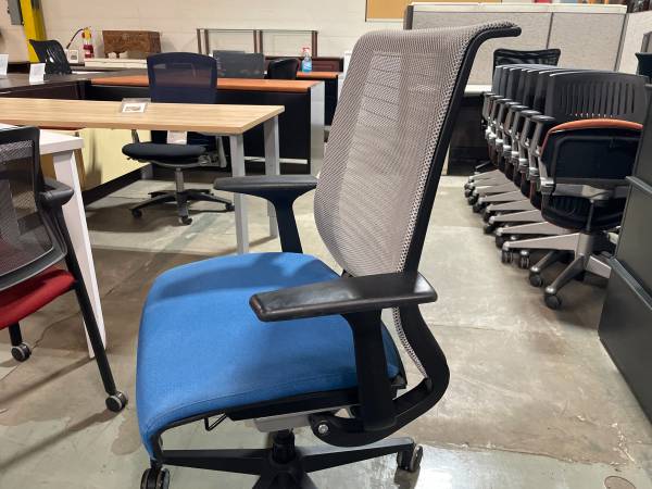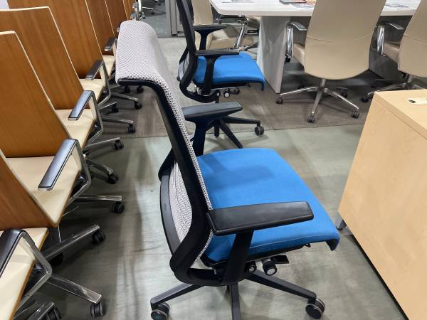 200x Steelcase Think V1 Office Chairs – $150 Each – Mesh Back | Light Blue Fabric Seats