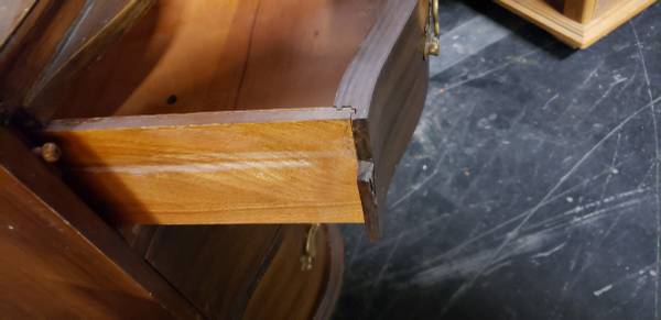 These certainly had style & class in the day. Multifunctional. You can use it as a china cabinet and as a desk to pay bills send a letter etc. It is old & in nice vintage shape. There is a piece missing on one of the glass doors. Will post size asap