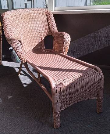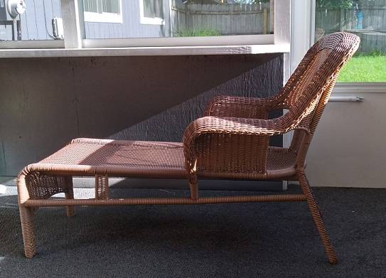 Very well made, sturdy, solid. Steel frame. Vinyl wicker. Clean. Only used inside in porch. Not used much. Like new.