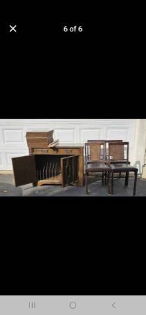 Cabinet is 40 wide, 30 tall and 20 deep - table comes out to 109 with 6 leaves - leaves are 15"