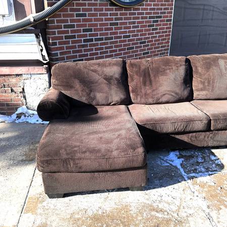 Brown Corduroy L-Shaped Sectional Sofa w/ Chaise – FREE Delivery 🚚 -...
