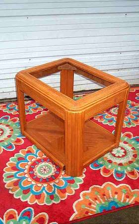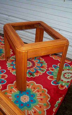$5 GETS ALL 3 TABLES PICTURED. Two end tables and one coffee table. MISSING THE TOP GLASS INSERTS. Cocktail table measures aprox 49 1/2" length x 31" deep x 16" height. End tables measure aprox 23" length x 28" deep x 22 1/4" height. Made in Thailand. Model number T 705-03-00. Pick up from North Aurora. Please call or text show contact info