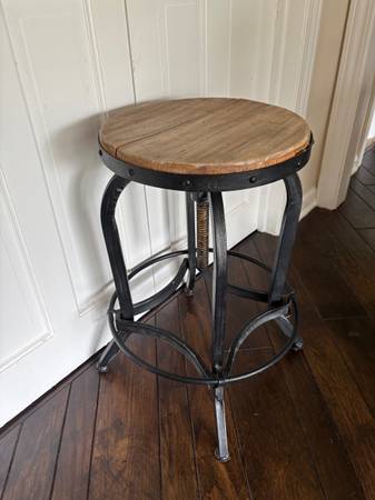 Seat 26” high, adjustable to higher. 15” diameter. Sturdy. Please reply with your name and phone number. Thanks.