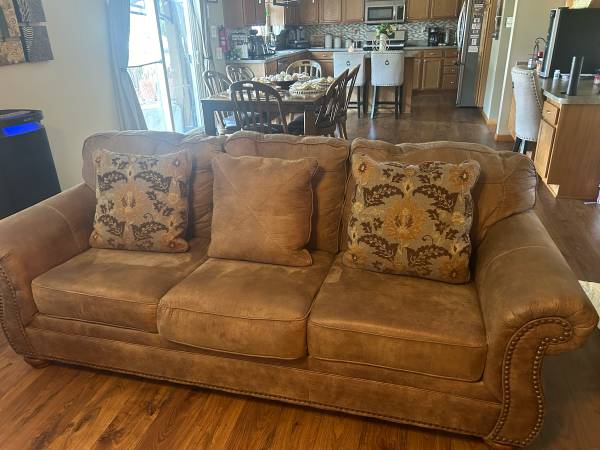 2 MATCHING SOFAS IN EXCELLENT CONDITION. WE HAVE NO KIDS OR PETS!!! COLOR IS SANDSTONE. WILL SELL 1 for $175 TEXT