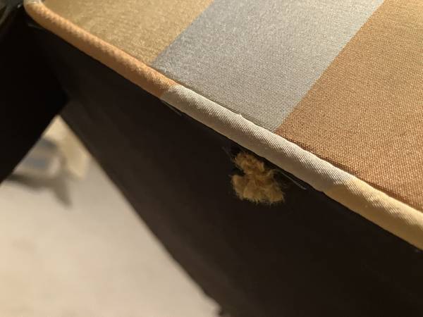VERY stained fabric from cat damage -- chairs have not been professionally cleaned.