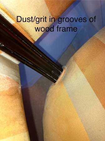The detailed grooves of the frames have dust and grit and need "detailing."