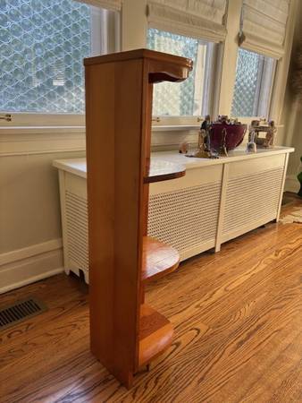 I have a Mid-Century Modern teak corner cabinet/bookshelf for sale. Perfect for displaying books, collectibles or other decorative items. This is a great option for maximizing your space!