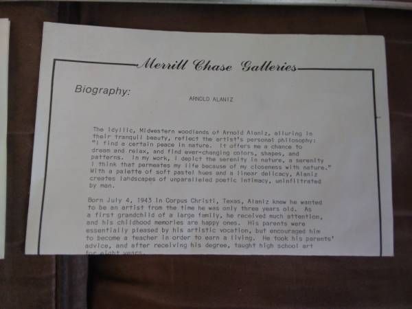 I am the original owner, it has been in my possession since I purchased it, new, directly from Merrill Chase Gallery in Schaumburg, IL., in 1987. It is still in its original matting and framing, I have never altered it.