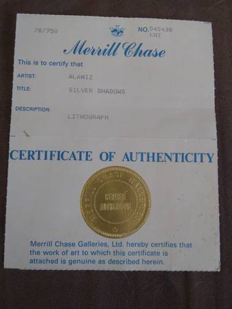 Arnold Alaniz Signed Numbered Lithograph and COA SILVER SHADOWS Merrill Chase - PICK UP ONLY