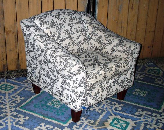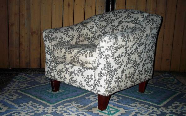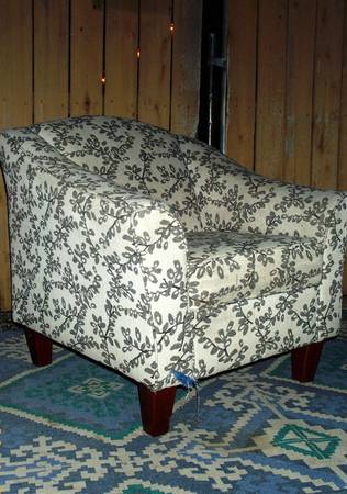 Living room chair. Mauve and silver leaf design. Very soft and comfortable. Used condition. Legs unscrew for easier transport. Chair measures aprox 36" length x 34" deep x 33" height. From floor to seating area 20" height. Pick up from Villa Park. Please call or text show contact info