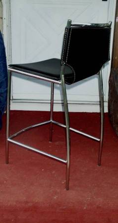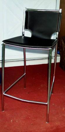 Great looking designer Wholesale Interiors INC. tall chair. For bar or high kitchen table, work bench, kitchen, etc. Shiny chrome and vinyl. There is a split on one side of the vinyl back rest. If you are handy you can re-stitch it...or leave as is. The seat area is fine. Chair measures aprox 16 1/4" wide x 17" deep x 35 1/2" height. 26" height from floor to seating area. Pick up from Villa Park, Illinois. Please call or text show contact info