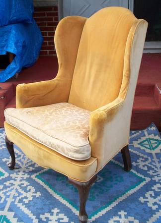 Vintage Ethan Allen "Traditional Classics" living room chair. Very strong and well made. Gold mustard yellow color. Chair has some color fading and would benefit from cleaning. Very stylish chair. Measures aprox 32" length x 24 1/2" depth x 44 1/2" height. From floor to seating area aprox 18 1/2" height. Pick up from Villa Park. Please call or text show contact info