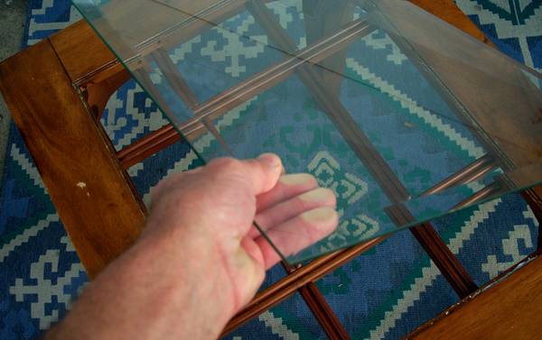 END TABLE with a nice beveled removeable glass inlay. Great for next to the couch, lamp table, bed, office, etc. Table measures aprox 23" length x 27" deep x 21 1/4" height. Pick up from Villa Park. Please call or text show contact info