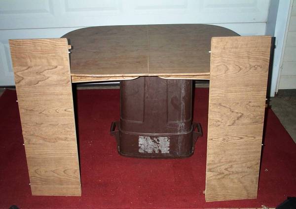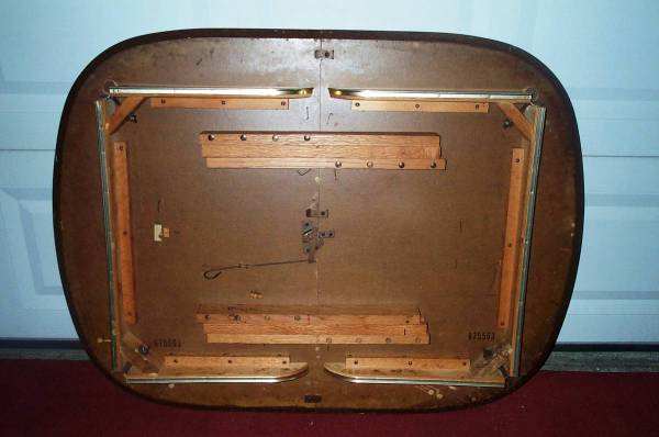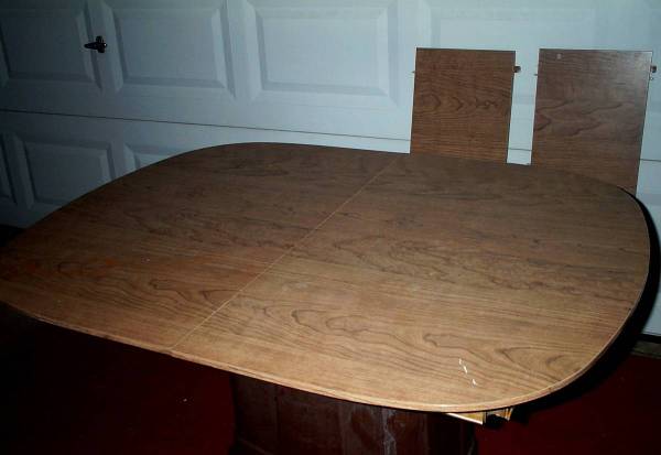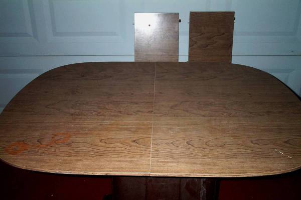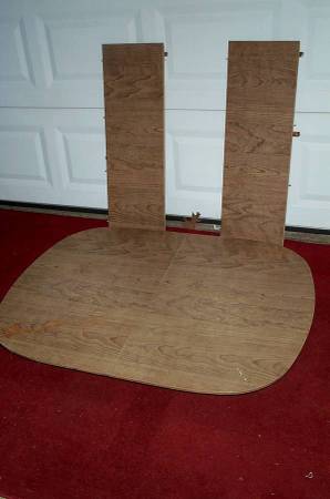 Walter Of Wabash kitchen table with two table insert leafs. Table is MISSING THE LEGS. Circa 1970's vintage. Table measures aprox 48" length x 35 3/4" deep x 3 1/2" height. Each leaf measures aprox 11 1/2" length to add an extra 23" to the table size if both are inserted (71" length). Walter Of Wabash tables sell for big money on eBay. Here is your chance for a deal. Pick up from Villa Park. Please call or text show contact info